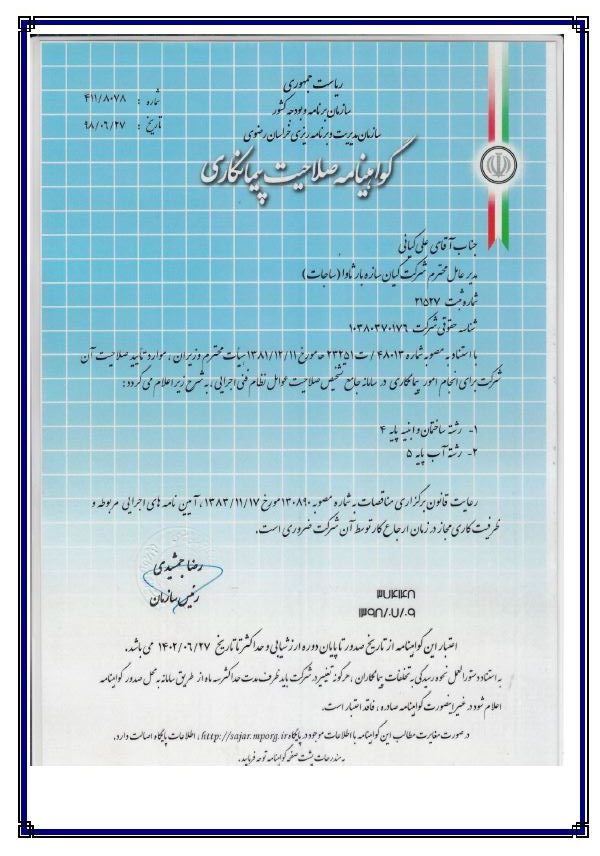۱- اولین پیمانکار بومی خراسان رضوی در زمینه طراحی و اجرای سازه نگهبان با سیستم انکرینگ.